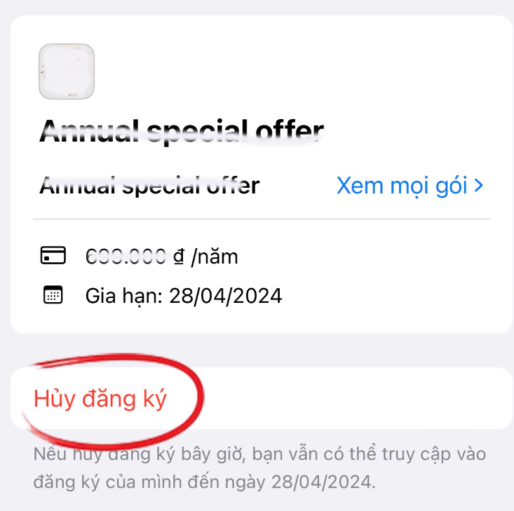 5. Ở phần chi tiết, bấm vào chữ "Hủy đăng ký" to đùng màu đỏ.