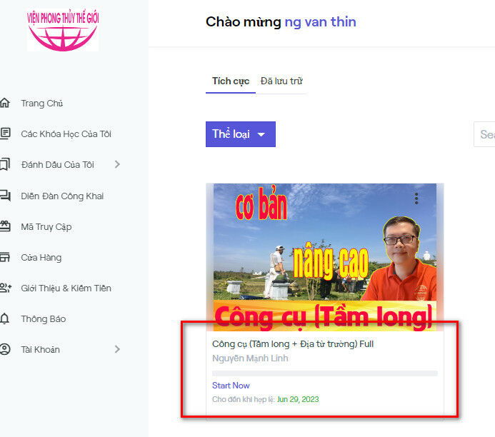 4. Tại bảng điều khiển, bấm vào "Khóa học của tôi" ở giữa, sẽ hiện ra các khóa học đã đăng ký