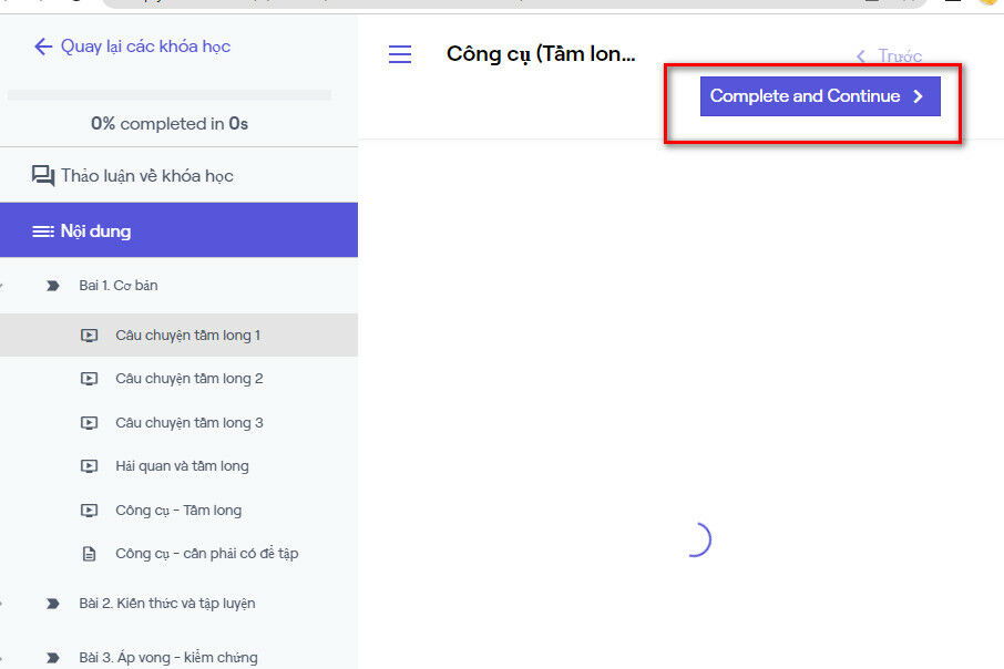 6. Học xong bài nào cần bấm hoàn thành "Complete and Continue" để sang bài tiếp